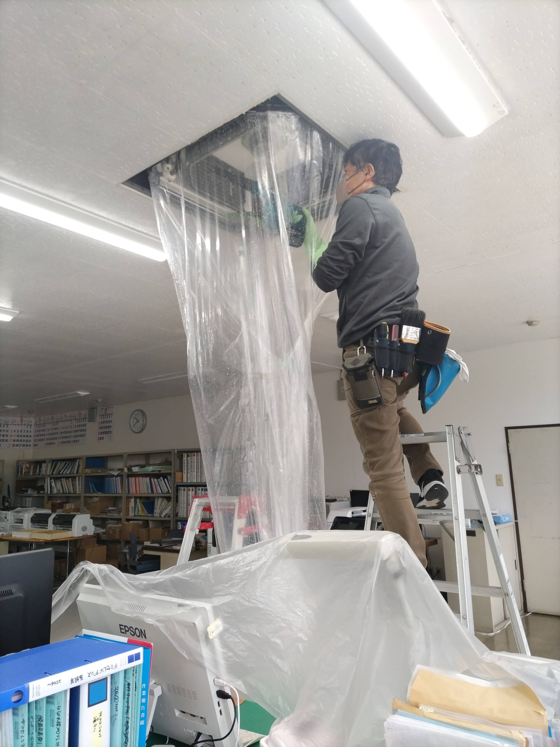 休業日を利用して、事務所のエアコンクリーニングを実施しました。