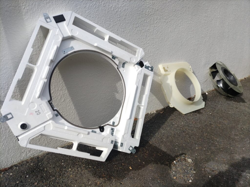 その水滴をドレンパンが受けて建屋外に排出するのですが、その周辺に残った湿気でカビなどが発生してしまうことが少なからずあるそうです。